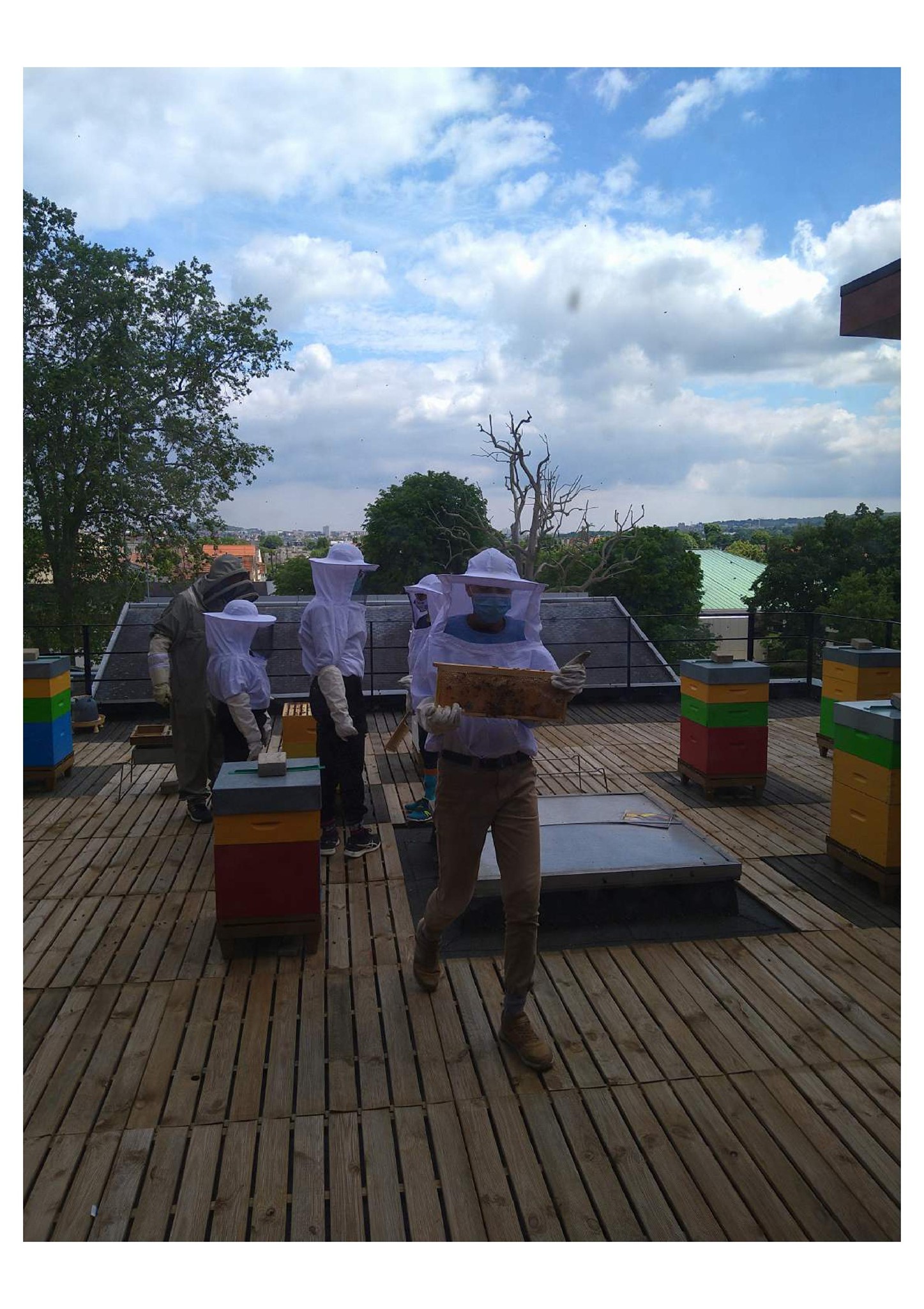 Des visites guidées sont organisées régulièrement pour que les élèves puissent découvrir notre rucher, et comprennent l'importance des abeilles pour l'équilibre de notre planète.